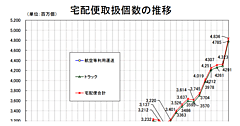こうした条件変更の要因を排除して2017年度の宅配便取扱個数を前年度と比較した場合、増加数は4343万個、増加率は前年度比1.1%増。
