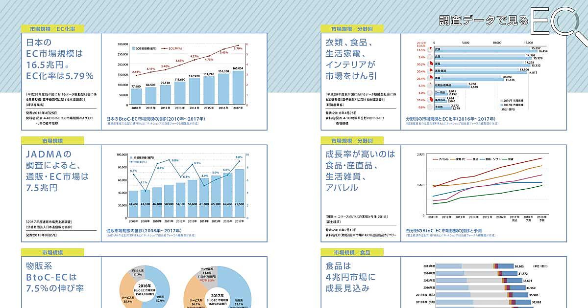 2018年10月31日発売のネッ担ムック『ECビジネス最前線 楽天、Amazon、ヤフー次の戦略&成長企業の事例12選』に掲載されているEC関連データ集「調査データで見るEC」のPDFダウンロードは、こちらからお申し込みください。
