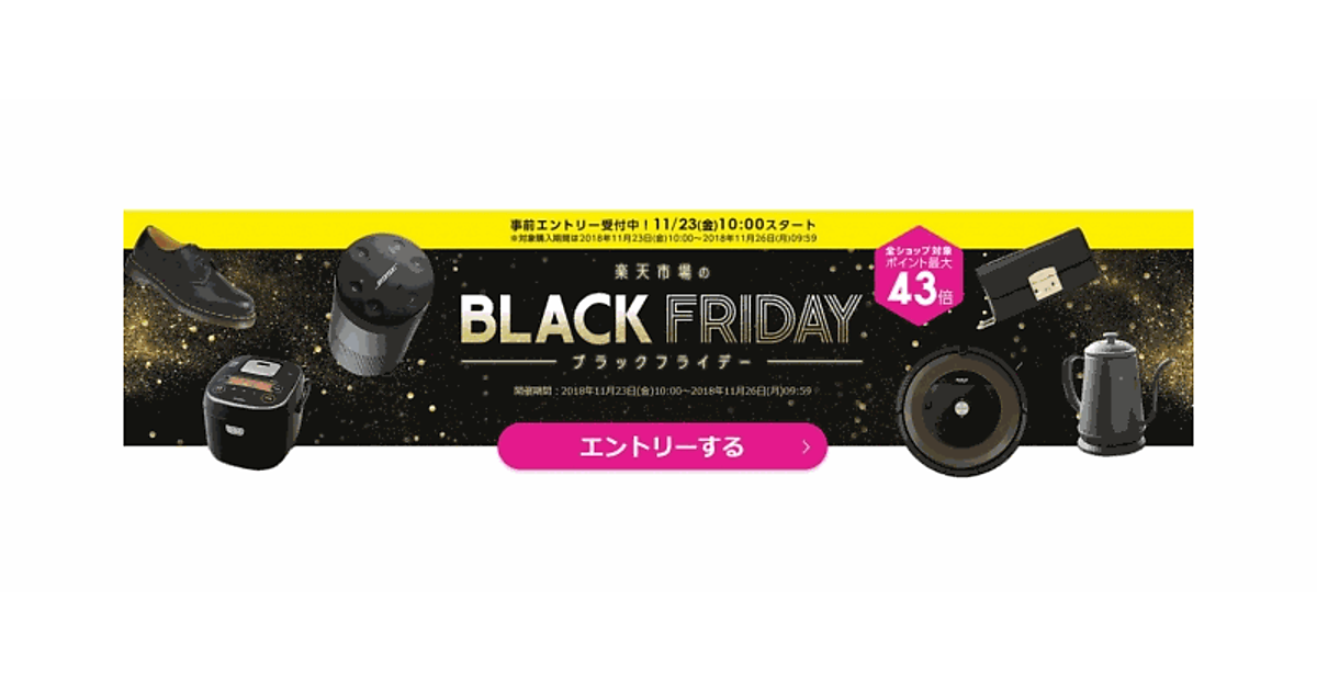 「楽天市場」では「楽天市場のBLACK FRIDAY ~ポイント最大43倍~」を実施する。