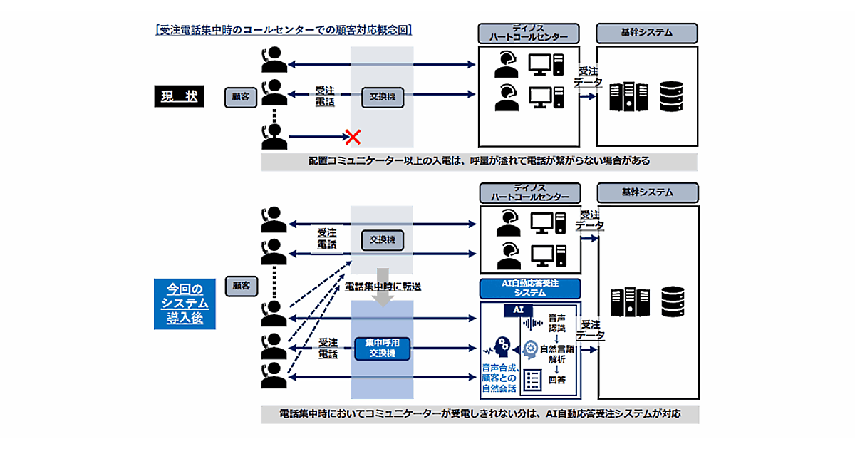 ディノス・セシールは11月20日、人工知能(AI)の音声認識技術を活用し、通販コールセンター向けの自動応答受注システムを開発すると発表した。電話注文が多いテレビ通販において、注文対応の効率化に活用する。2019年春に稼働を開始する予定。