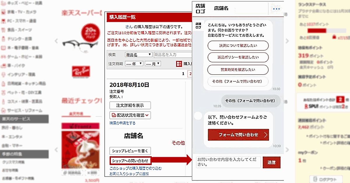 問い合わせの多いカテゴリにまずはチャットボットを実装。ニーズの高い配送状況など、他のカテゴリについては「次のステップ」(楽天)という。