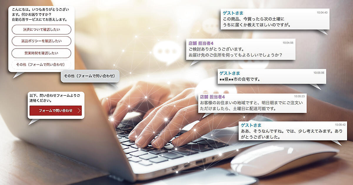 たとえば、チャットで1か月前に商品を購入したAさんが質問してきた際、店舗側は会員IDと照合した上で「Aさん、ご質問ありがとうございます。1か月前に当店をご利用いただきましてありがとうございました」といった、店頭接客のような会話がECサイト上で実現できるようになるという。