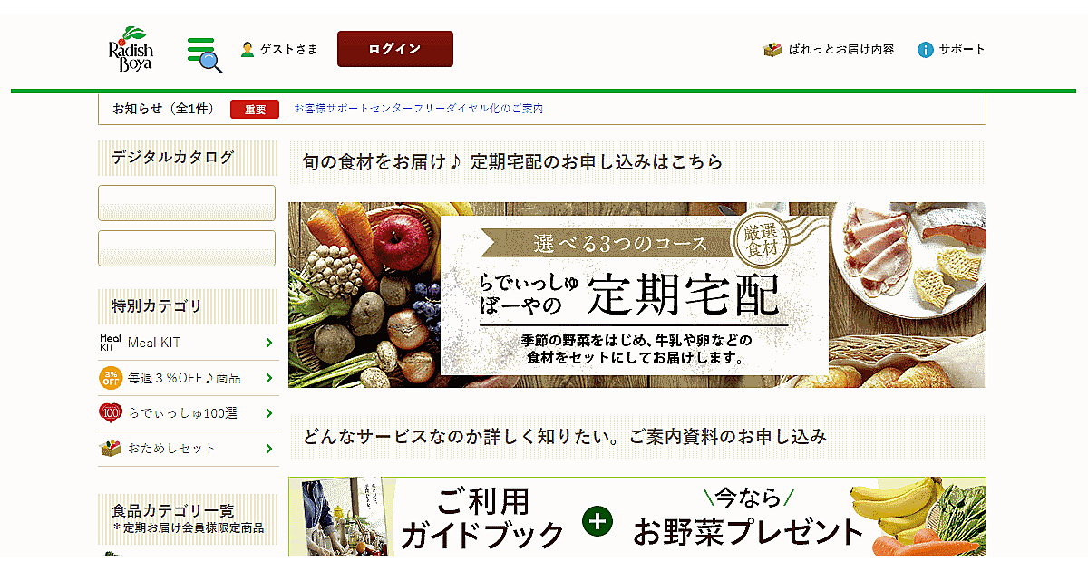 また、「3歳未満の子どもがいる会員」や「3年以上継続利用している会員」は、以前は注文金額にかかわらず送料が無料(3年以上の会員は定期購入のみ送料無料)だったが、送料無料ラインを注文金額3000円以上に変更した。