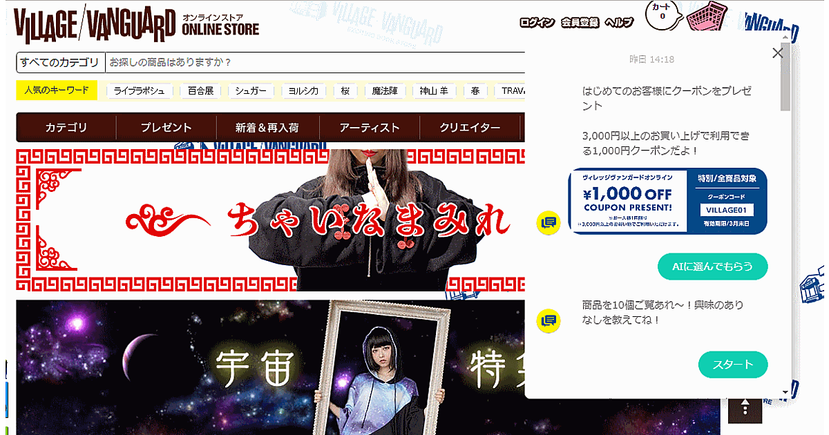 ヴィレッジヴァンガードコーポレーションは3月26日、顧客の好みに合った商品や、お薦め商品などをレコメンドするチャットボット「AI新機能」を公式通販サイトに実装した。