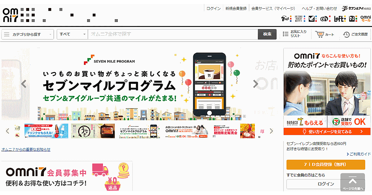 セブン&アイグループは2018年6月、新たな会員プログラム「セブンマイルプログラム」を開始した。「omni7」のECサイトや、セブン-イレブンやイトーヨーカドー、西武・そごう、アカチャンホンポ、ロフトの店舗やEC、ネットスーパーを利用するとマイル(ポイント)が貯まる。