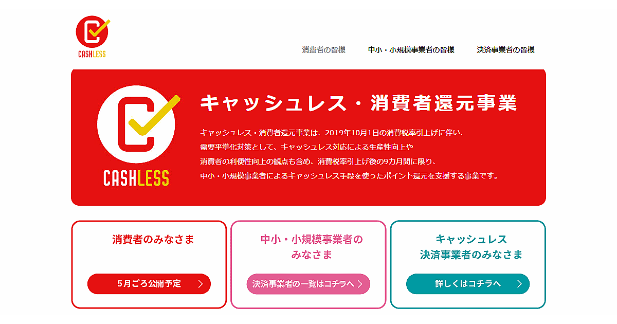 - キャッシュレス・消費者還元事業の公式サイト