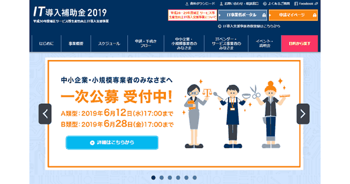 IT導入補助金は、中小企業・小規模事業者などを対象に、ITツール導入にかかる経費の一部を補助する制度。補助対象のツールは、あらかじめIT導入支援事業者が事務局に登録し、認定を受けたITツールの導入費に限る。