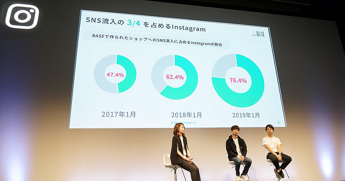 BASEでは2019年6月にインスタグラムの商品写真にタグを設置できる「Instagram販売App」の提供を開始した。2019年4月時点で「Instagram販売App」の利用店はトランザクションが2.7倍になっている。