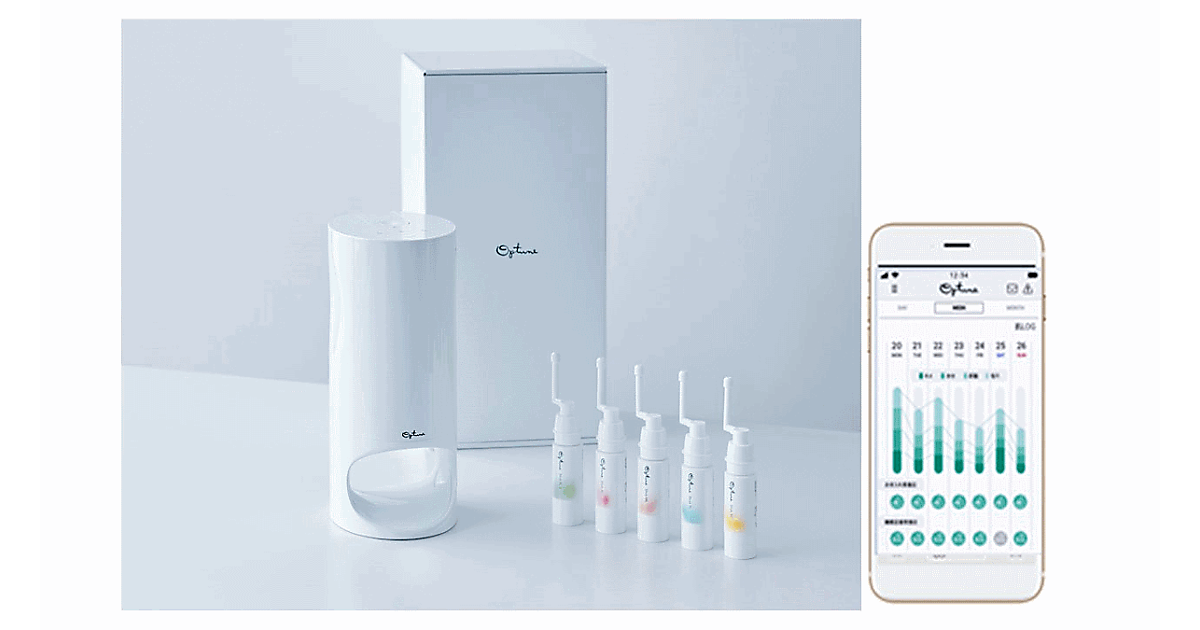 ユーザーは「Optune」の専用サイトで申し込んだ後、専用アプリをダウンロードする。スマホのカメラで肌を撮影し、アプリで肌状態を測定すると、後日、ユーザーの肌状態に合わせたスキンケア化粧品のカートリッジ5本と、専用の調合マシンが届く。カートリッジをマシンにセットして使用する。