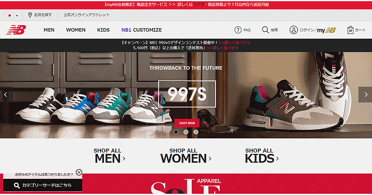 ニューバランスジャパンは、顧客に寄り添ったサービス設計で公式通販サイト(画像)の会員数を大きく伸ばしており、自社EC売上高も2ケタ成長を続けているようだ。