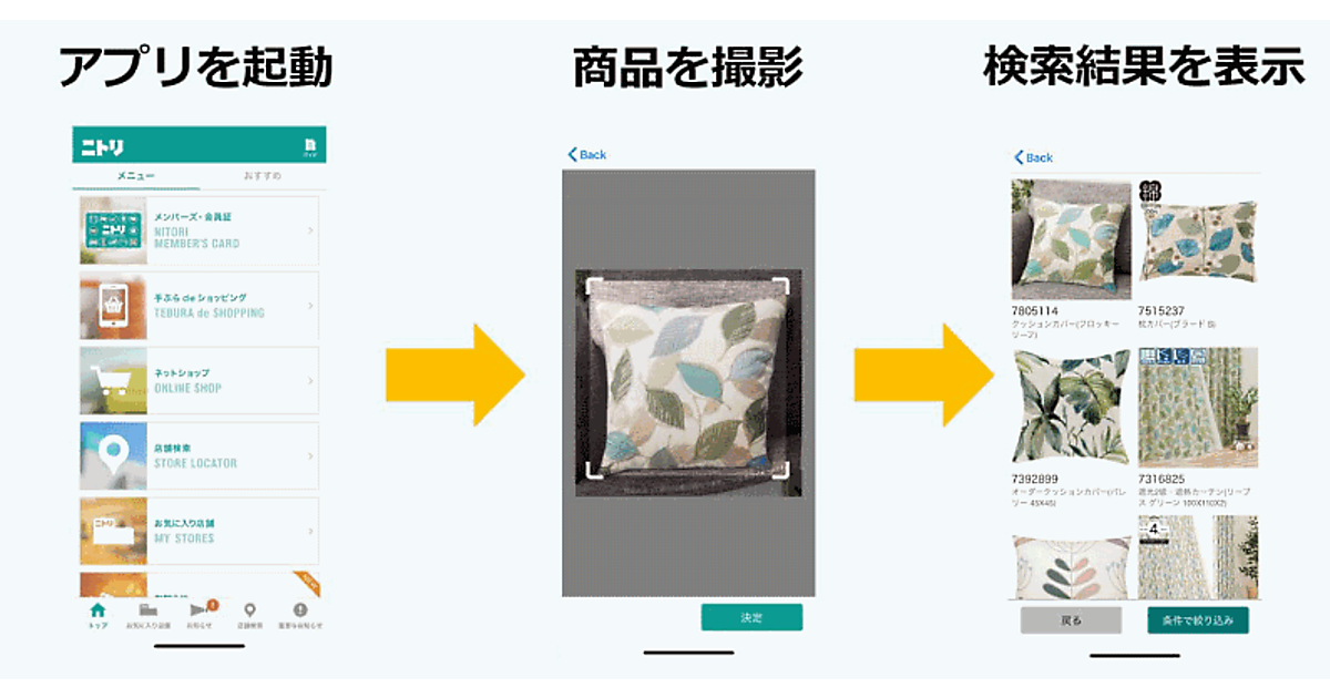 ニトリホールディングスは7月11日、スマホで撮影した商品写真を使ってECサイトの商品などを検索できる画像検索機能を、ニトリ公式アプリに実装すると発表した。