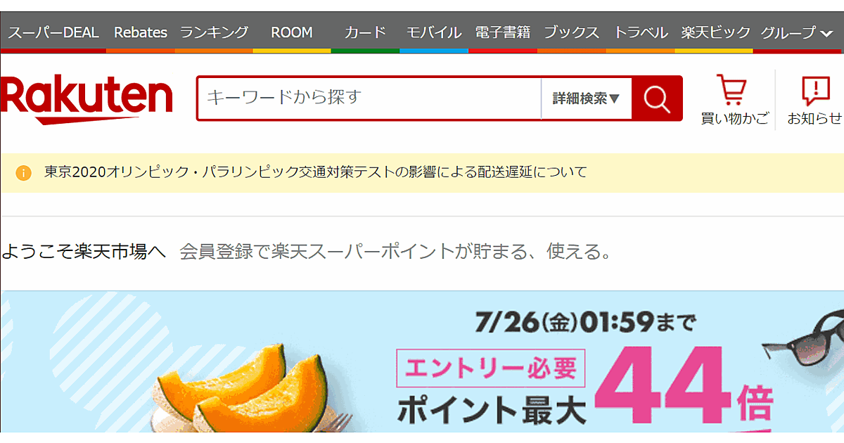 「楽天市場」「Yahoo!ショッピング」などのECサイトでは、交通対策テストによる配送遅延が起きる可能性について告知している