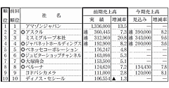10位にはZOZOがランクイン。上位10位入りは初めてのことで、売上高は1184憶500万円と、1000億円台到達とともに上位10社入りした格好だ。なお、1000億円以上は昨年同時期調査より1社減り12社となっている。