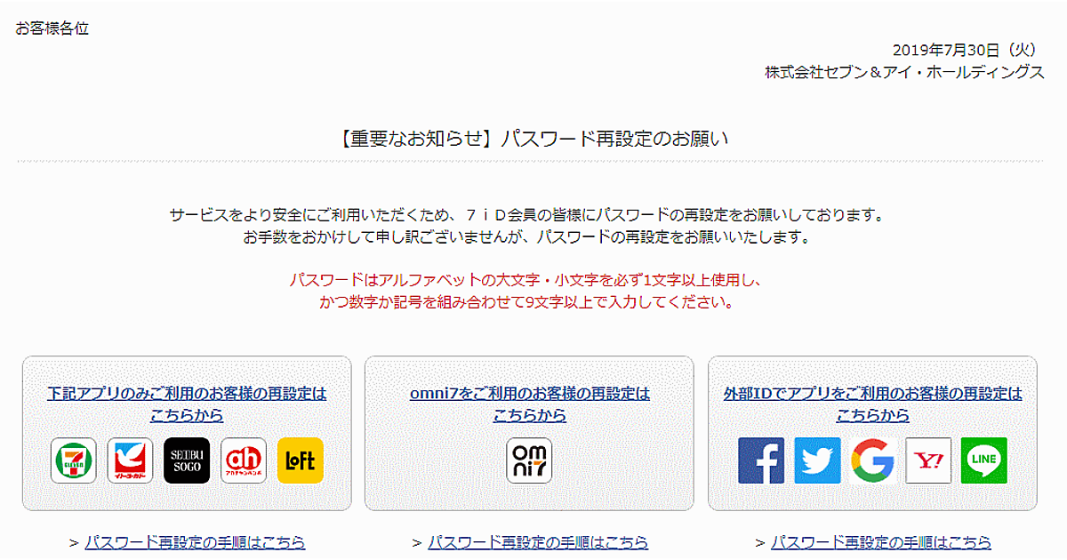 セブン&アイ・ホールディングスは7月30日、バーコード決済サービス「7pay」に対する不正アクセスが発生したことを受け、7iDとパスワードの一斉リセットを同日実施したと発表した。再度ログインする場合のパスワードの設定条件も変更した。