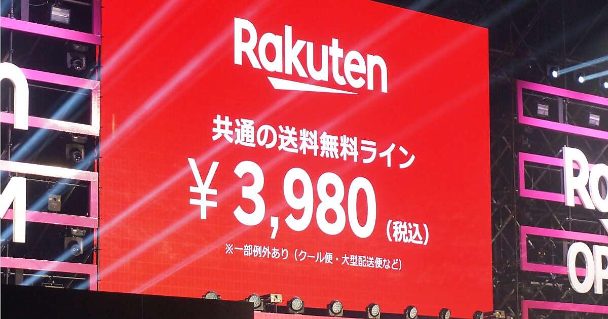 楽天は8月1日、「購入金額●●●●円以上で送料無料」といった送料の消費者負担を0円とする“送料無料ライン”を、「楽天市場」全店舗共通で税込み3980円以上にすると発表した。
