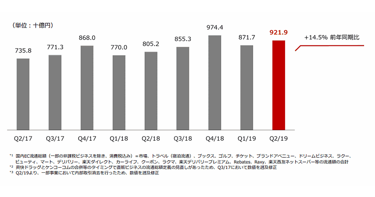 楽天の国内EC流通総額は13.8%増の1兆7936億円【2019年中間期まとめ】