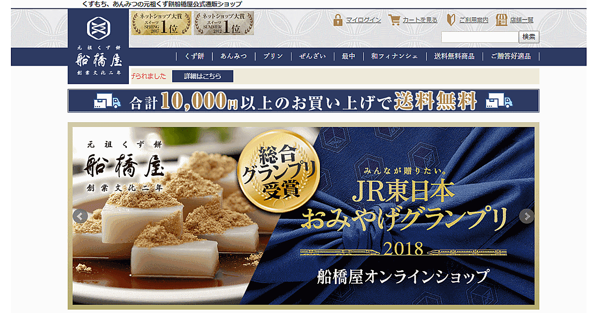 くず餅などを製造・販売する老舗和菓子屋の船橋屋では通販事業の売上高が順調に伸びている。昨年度の売上高は前年比47%増。特に下期(10月~3月)だけで見ると同105%増と大きく伸長した。自社サイトだけでなく、仮想モールでの販売もすべてプラスとなっている。