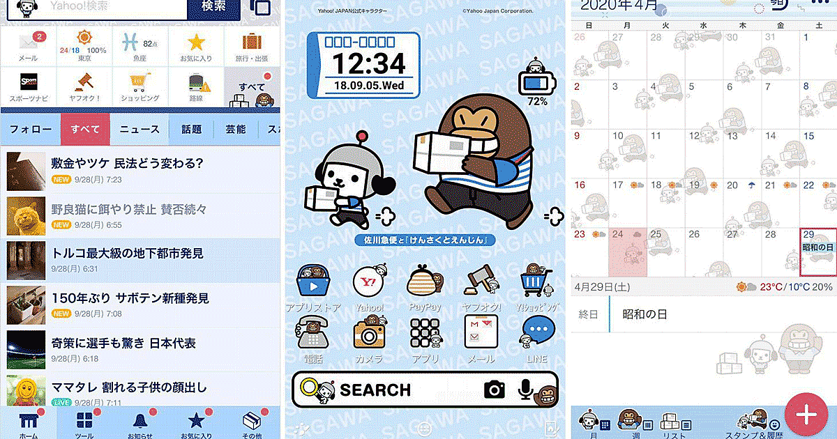 本機能の提供開始を記念して、「Yahoo! JAPAN」アプリ、「Yahoo!カレンダー」アプリ、および「Yahoo!検索」で、Yahoo! JAPANの公式キャラクター「けんさくとえんじん」が佐川急便のユニフォームを着用したデザインのきせかえテーマも提供する。