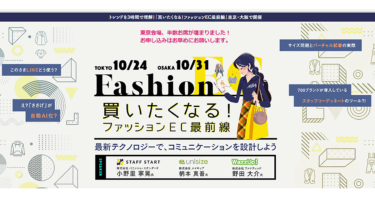 ファッションECの課題解決に役立つ最新テクノロジー提供企業3社登壇のセミナー[10/24東京、10/31大阪]