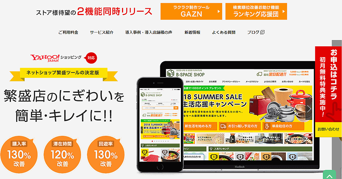 コマースニジュウイチ(コマース21)は提供している「Yahoo!ショッピング」出店者向けのにぎわい演出ツール「B-Space」に、簡単にバナーを作成できる「GAZN(ガゾーン)」、自社と他店のランキングデータが可視化できる「ランキング応援団」を追加した。