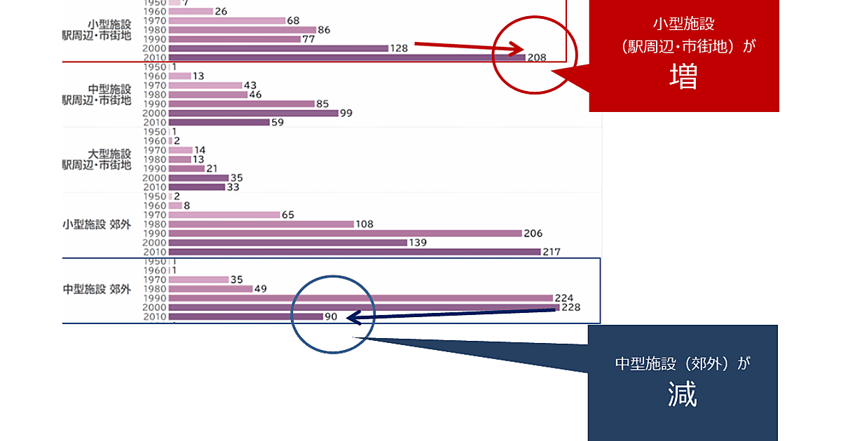 この傾向を踏まえ、3か年データから商業施設の大転換の予兆があると指摘。キーワードは「モノよりトキ」としている。