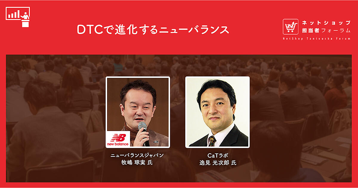 インプレスが11月12日・13日に東京・虎ノ門ヒルズフォーラムで開催する「ネットショップ担当者フォーラム2019 秋」のゼネラルセッション(12日)に登壇するのは、ニューバランスジャパンの牧嶋琢実氏(DTC Ecommerce部シニアマネージャー)と、オムニチャネルコンサルタントの逸見光次郎氏(CaTラボ代表)。