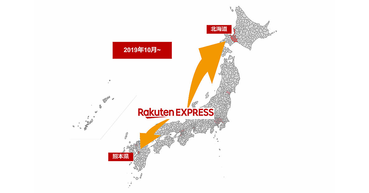 楽天は10月31日、独自の配送サービス「Rakuten EXPRESS」の対象地域を北海道と熊本県の一部地域へ拡大したことを発表した。