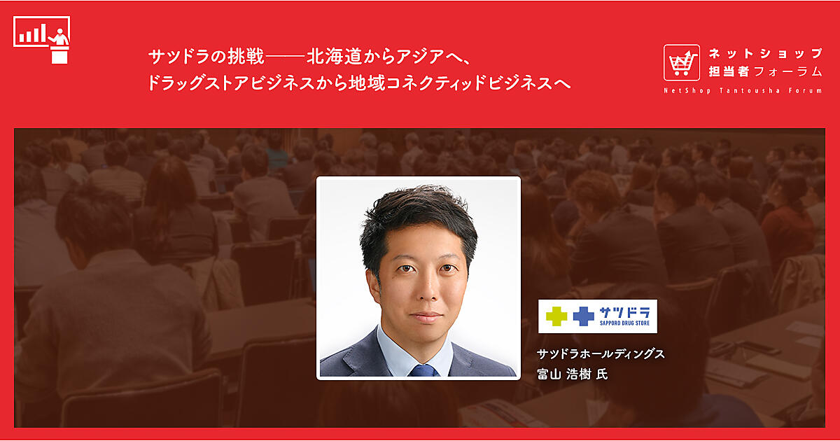 インプレスが11月12日・13日に東京・虎ノ門ヒルズフォーラムで開催する「ネットショップ担当者フォーラム2019 秋」のゼネラルセッション(13日)では、サツドラホールディングス 代表取締役社長 富山浩樹氏が「サツドラの挑戦――北海道からアジアへ、ドラッグストアビジネスから地域コネクティッドビジネスへ」をテーマに登壇。次のようなことを来場者に披露するとしている。