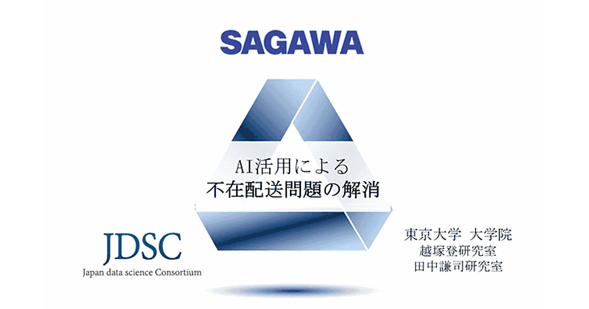 佐川急便は10月31日、日本データサイエンス研究所(JDSC)、東京大学大学院越塚登研究室・田中謙司研究室とともに、「AIと電力データを用いた不在配送問題の解消」に関して、3者共同研究開発することで合意したと発表した。