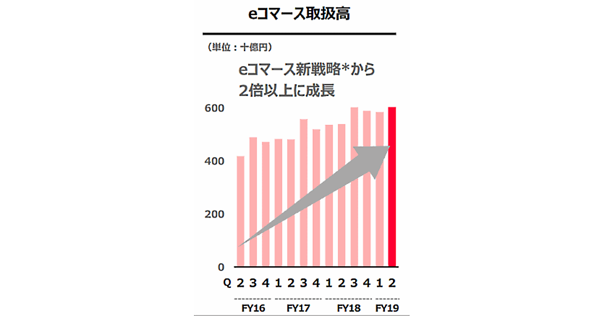 Zホールディングスが11月1日に公表した決算資料によると、2019年4~9月期(2020年3月期 中間期)におけるグループの「eコマース取扱高」は前年同期比10.4%増の1兆1887億円だった。