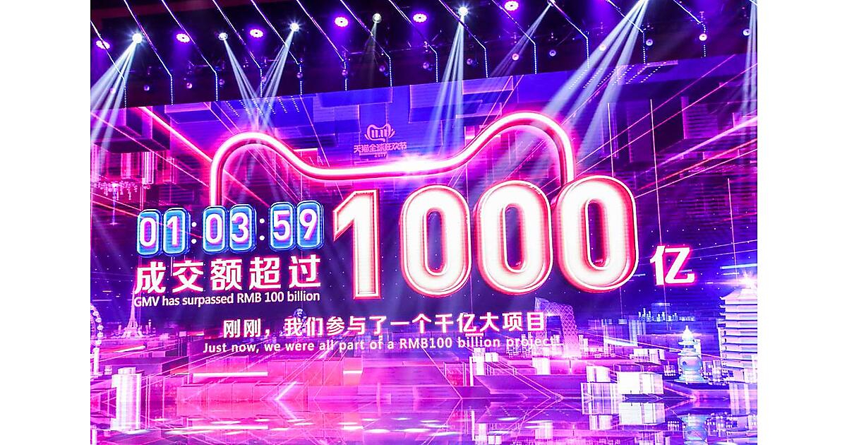 中国で行われたネット通販の買い物の祭典「独身の日」(W11、ダブルイレブン)で、中国のECプラットフォーム最大手の阿里巴巴集団(アリババグループ)の取扱高(GMV)が、スタートから1時間3分59秒で1000億人民元に達した