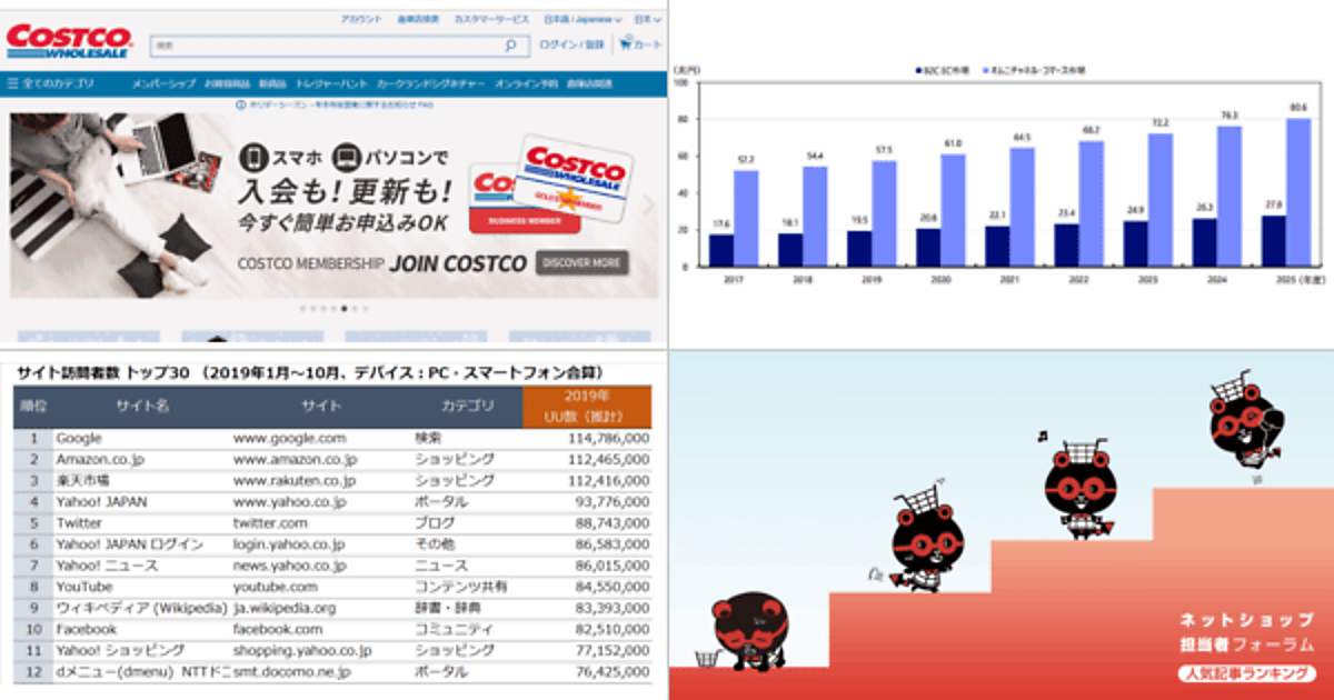 訪問者数が多いWebサイトの1位はGoogle、2位にAmazon、3位に楽天市場