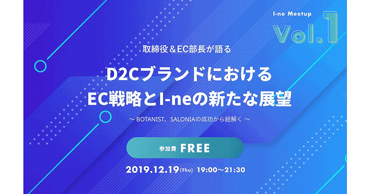 ボタニカルシャンプー「BOTANIST」などで知られるI-neは、「D2CブランドにおけるEC戦略とI-neの新たな展望」をテーマにしたデジタルマーケター向けの自社イベントを12月19日(木)に大阪本社で開催する。