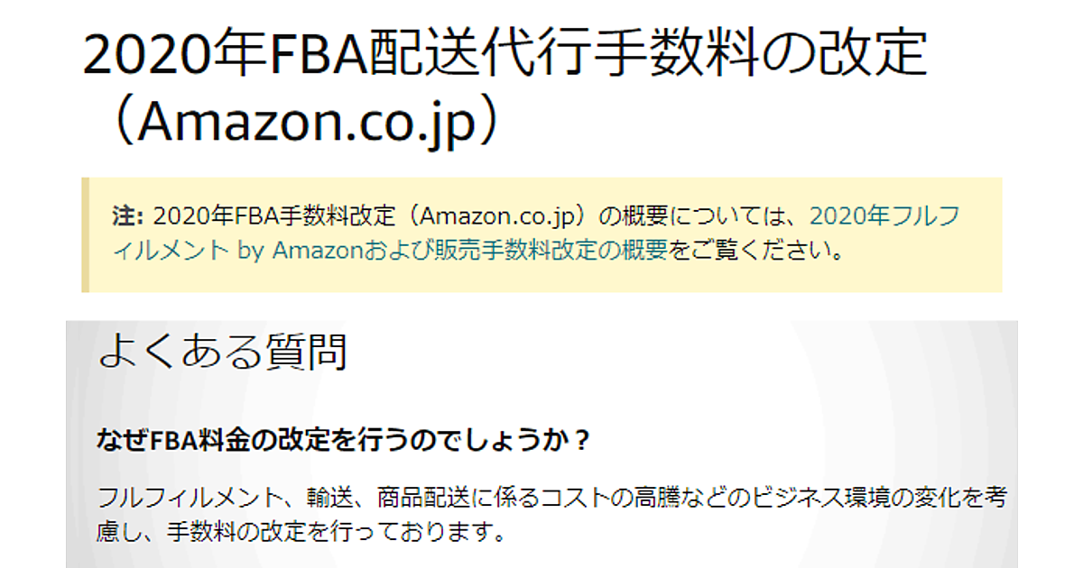 アマゾンジャパンは物流代行サービス「フルフィルメント by Amazon(FBA)」の配送代行手数料を2020年4月1日に改定すると発表した。現在のサイズ区分である「小型」「標準」「大型」は約2~10%の値上げとなる。また、「大型」よりも大きいサイズ区分として「特大型」を新設する。