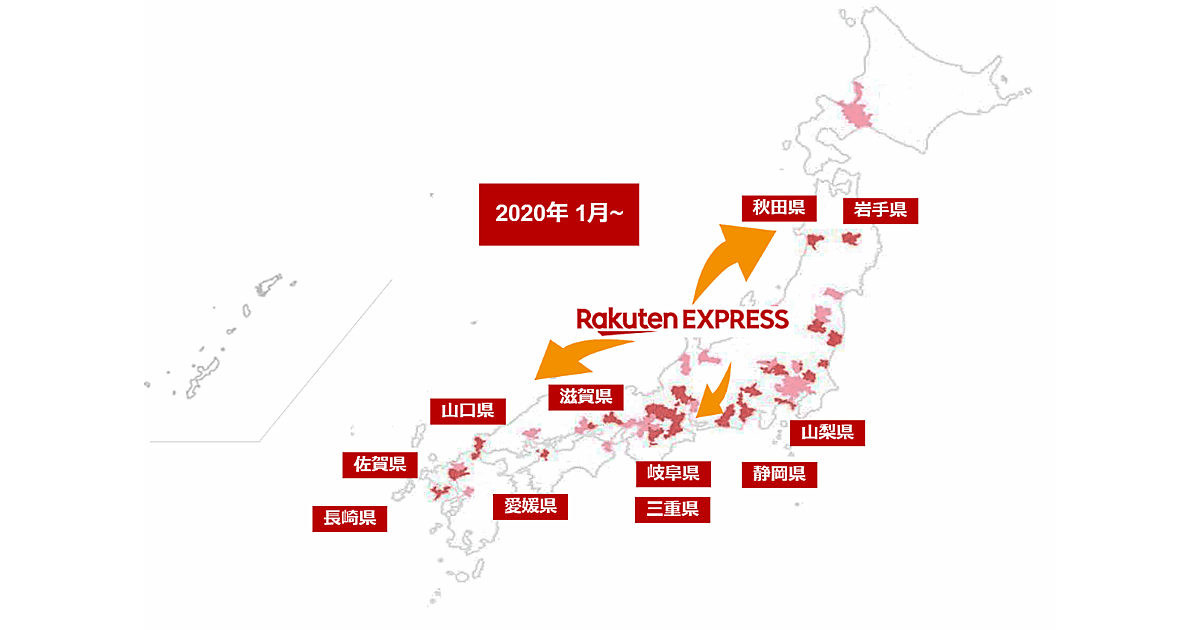 楽天は1月28日、配送サービス「Rakuten EXPRESS」の配送対象エリアを、秋田県、岩手県、山梨県、静岡県、岐阜県、三重県、滋賀県、愛媛県、山口県、佐賀県および長崎県に拡大したと発表した。
