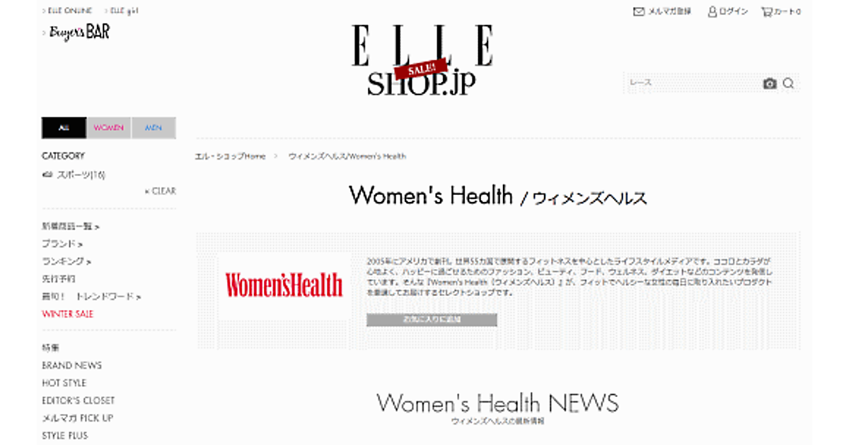 運営しているECサイト「ELLE SHOP(エル・ショップ)」の中に「ウィメンズヘルスセレクトショップ」を開設。編集者が選んだヨガウエアや雑貨などを販売している。