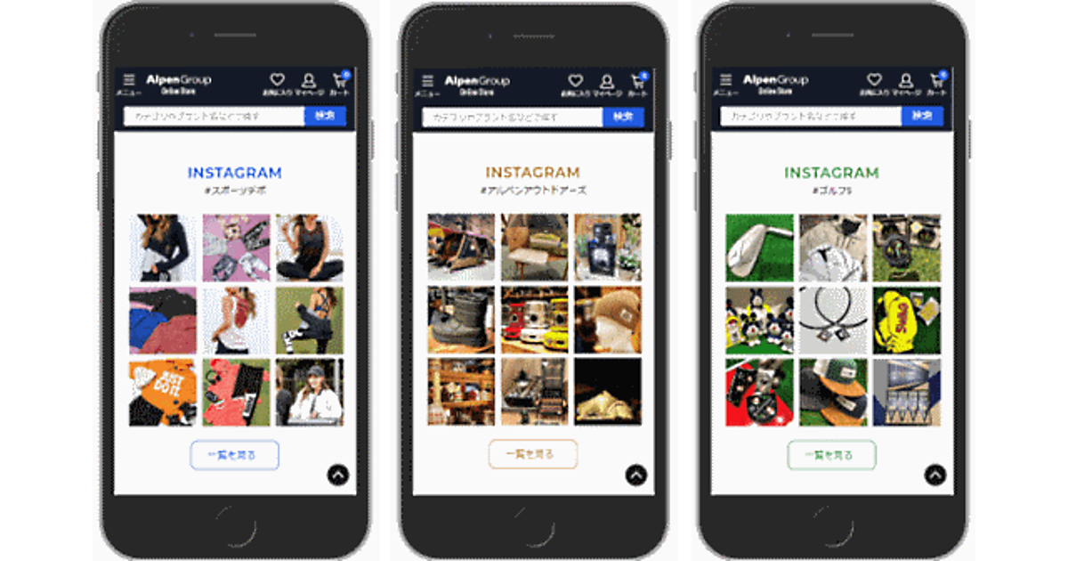 アルペンは事業別や店舗別で発信しているInstagramの投稿を総合ECサイト「アルペングループオンラインストア」に集約、各アカウントの写真投稿を通じた販促を強化する。