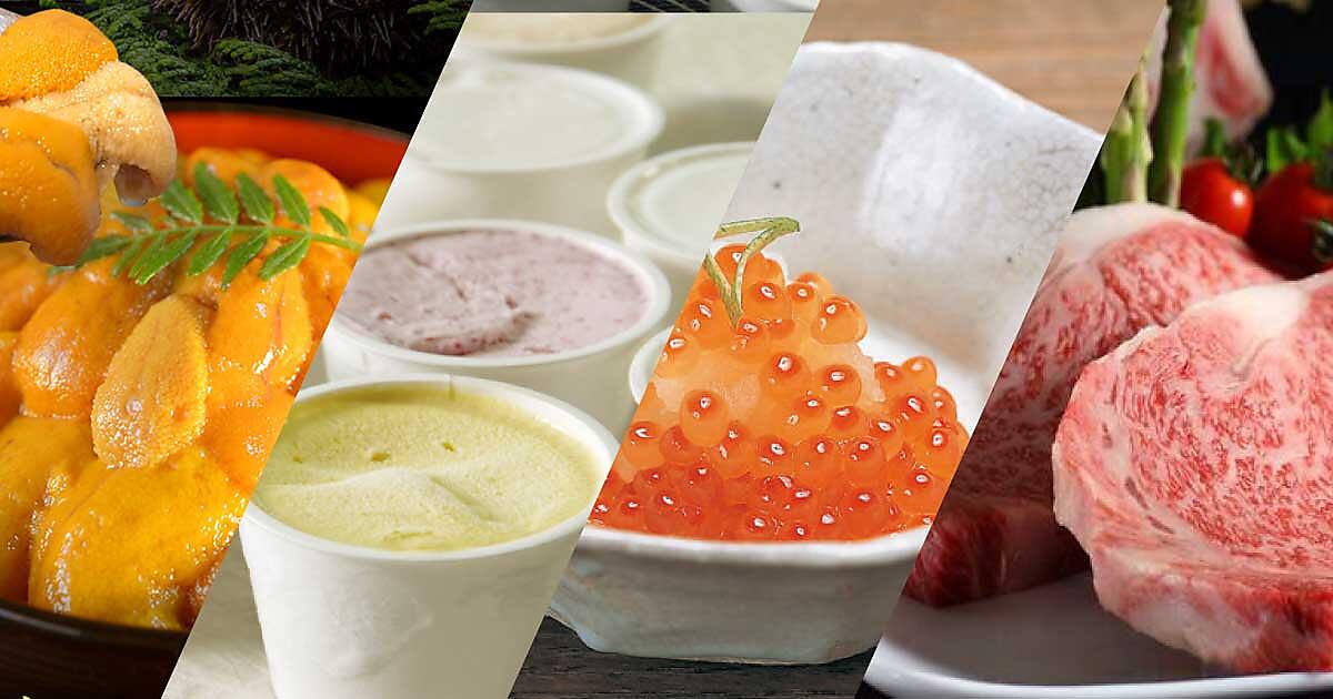 物産展グルメを詰め合わせたスカイショップ小笠原の「北海道ふっこう「復」袋(福袋)」など、美味しいものを販売する日本各地の約50の店舗が出品している特集ページ。