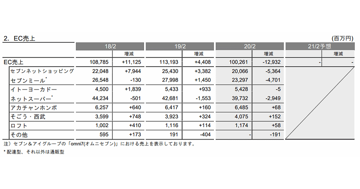 セブンネットショッピングやセブンミールなどこれまでEC売上高の増収をけん引してきた事業がマイナス成長に転じたほか、ネットスーパーの減収幅が前期より拡大したことが響いた。