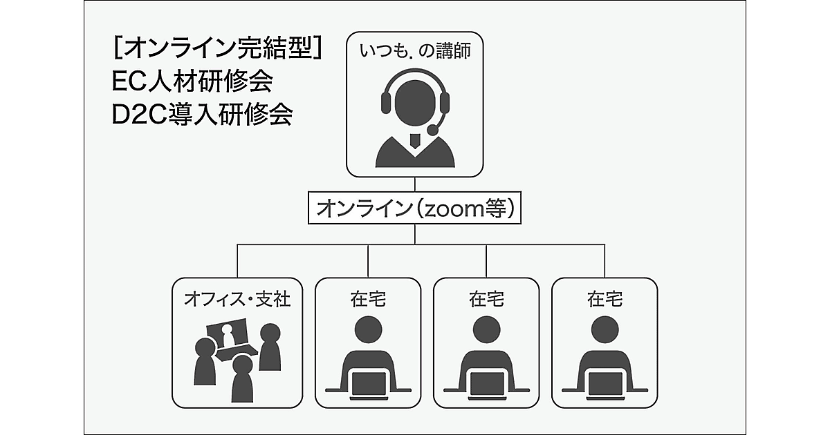 いつも. によると、新型コロナウイルスの影響により実店舗の売り上げが減少し、EC事業へ人材の配置転換、販促投資の変更を行う動きが増加。在宅勤務者が増えオンライン・WebによるEC人材育成・ノウハウ習得研修に関する相談が増えていることから、研修プログラムの提供を始めた。