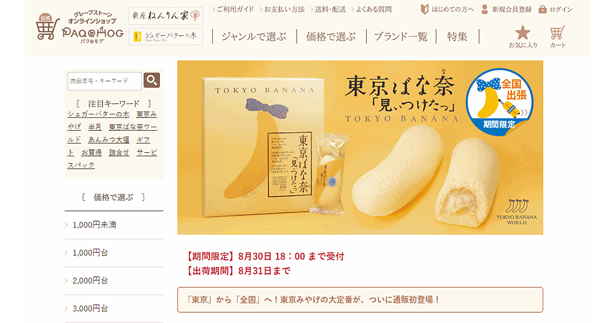 東京みやげブランド「東京ばな奈ワールド」などの製造・販売を手がけるグレープストーンは4月21日から、公式ECサイト「お菓子の通信販売 パグとモグ」で、土産の定番品「東京ばな奈『見ぃつけたっ』」を期間限定での販売を始めた。