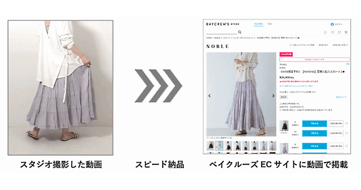 クラウド型の動画制作ツールを提供しているSoVeC(ソベック)は4月27日、ファッション事業などを手がけるベイクルーズとの共同事業として、ファッションECサイトに掲載する動画を自動で制作する取り組みの実証実験を開始すると発表した。