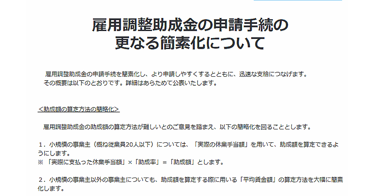 厚生労働省は5月6日、雇用調整助成金の迅速な支給を行うため、申請手続きをさらに簡素化すると発表した。