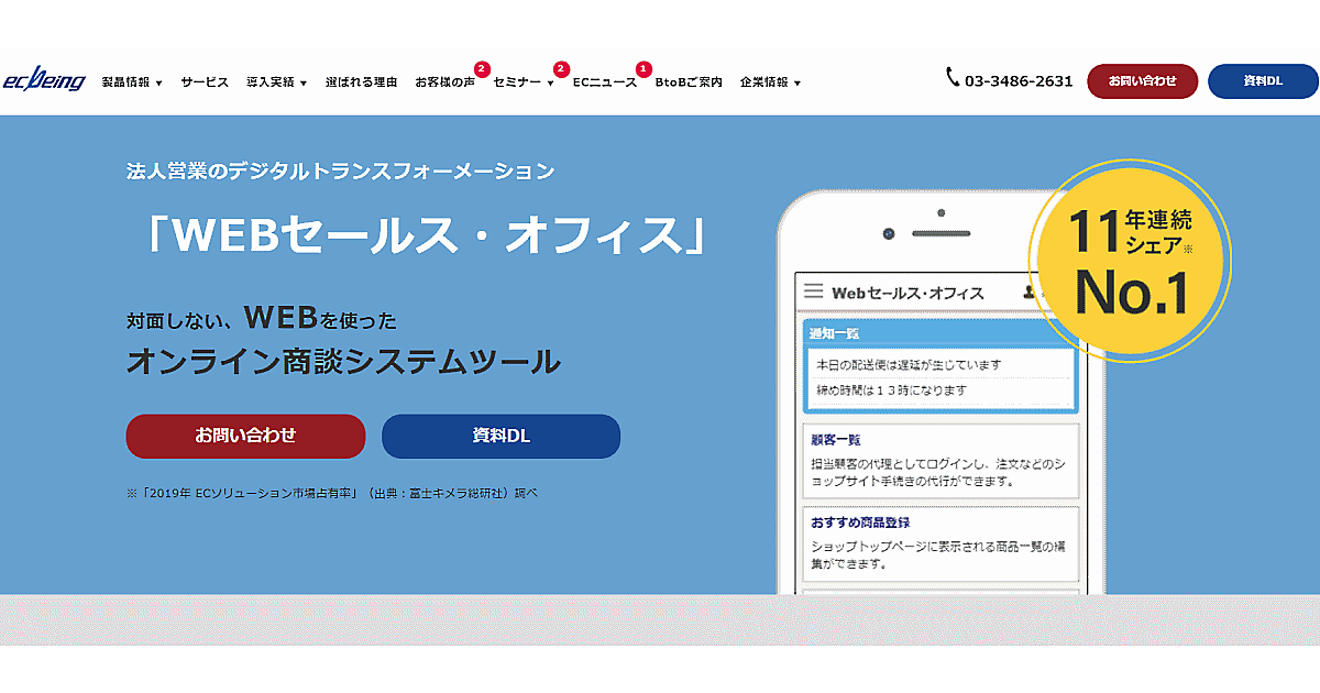 ecbeingは5月20日、営業担当と取引先がオンライン上で営業のやり取りを行える新営業ソリューション「Webセールス・オフィス」の提供を始めた。