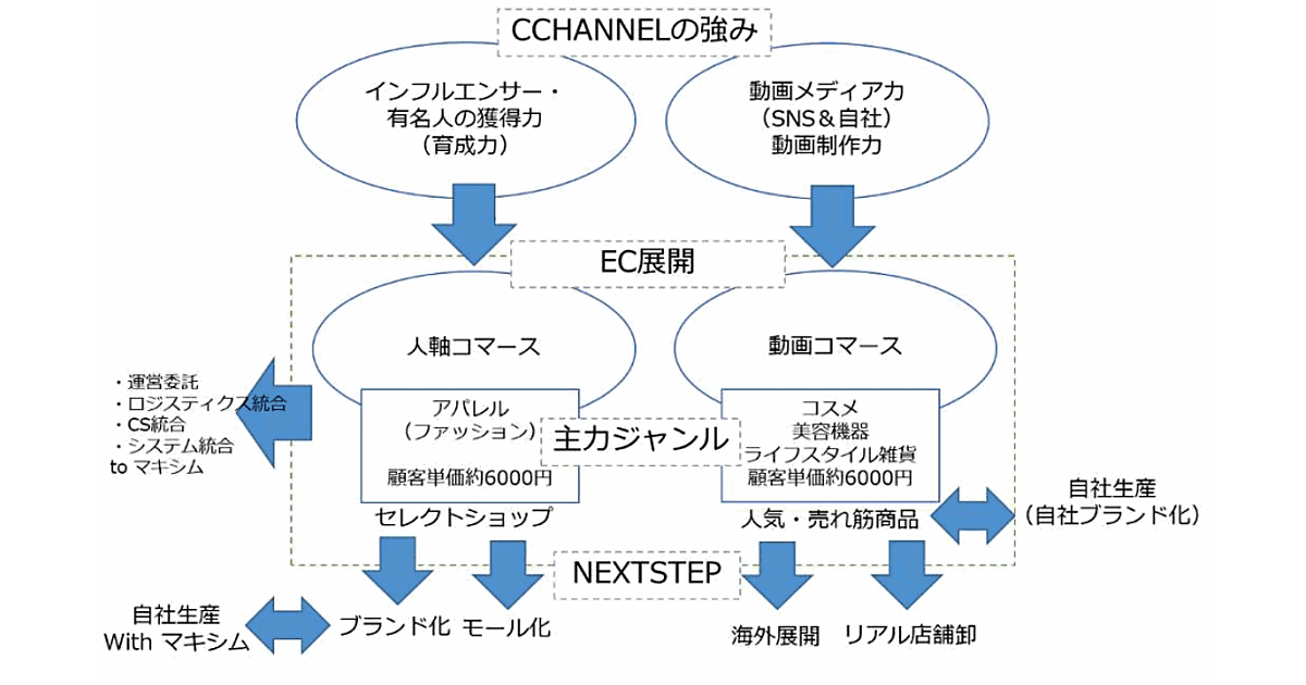 「eコマース事業」は連結子会社のマキシムが手がけるアパレルブランド「KOBE LETTUCE」を中心に、韓国ファッションなどのアパレルブランド「Isn’t She?」や、化粧品・美容器具のブランド「BELL PALETTE」などを展開している。インフルエンサーを起点とした販売や、動画メディアを活用した販売促進を行なっているのが特徴。