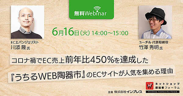 ネットショップ担当者フォーラム編集部は6月16日(火)午後2時〜、無料ウェビナーを開催します。