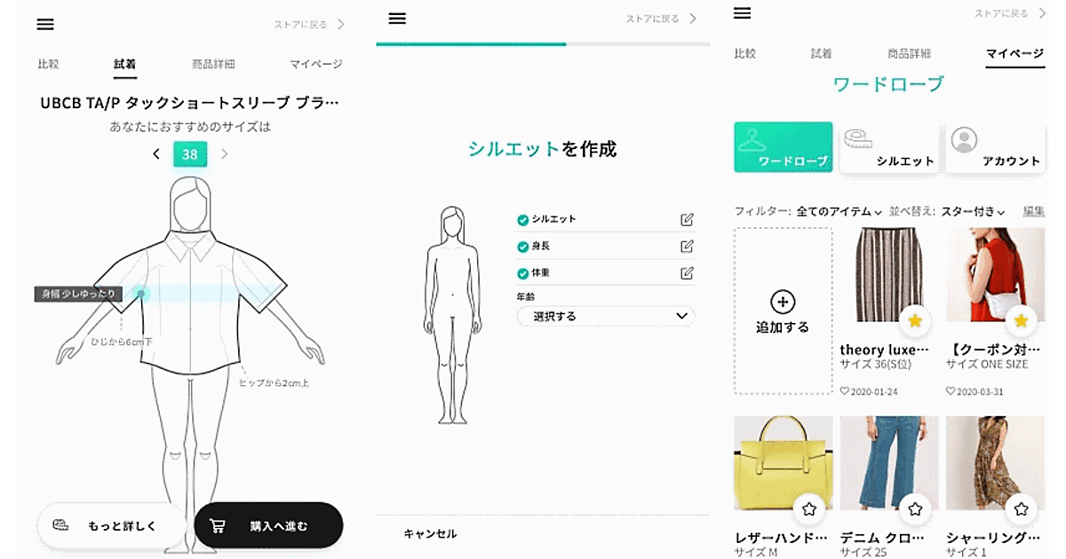 機械学習アルゴリズムにより、ユーザーは自分自身の実物に近い仮想シルエットを作成できる。体型に適した商品を見つけることができるようになるという。