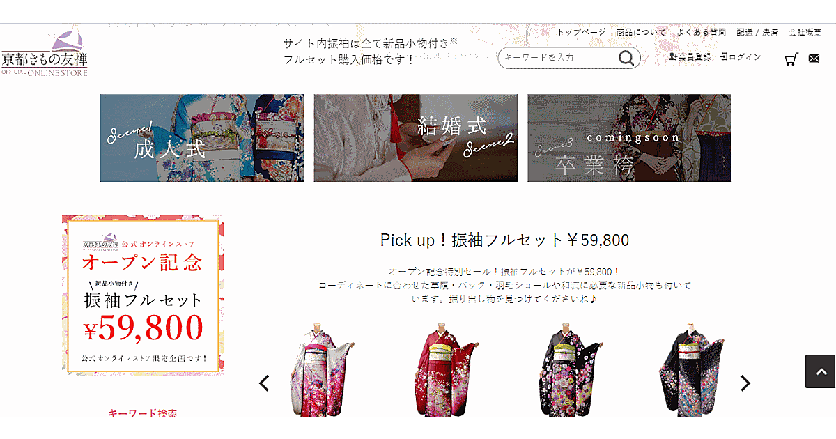 呉服販売の京都きもの友禅がネット通販をスタートした。自社ECサイトの開設のほか、「楽天市場」に出店。9000点超の在庫量、品質の良い振り袖を現金で大量買取して販売する価格力を武器に、ECユーザーや既存ユーザーのネット利用を開拓する。