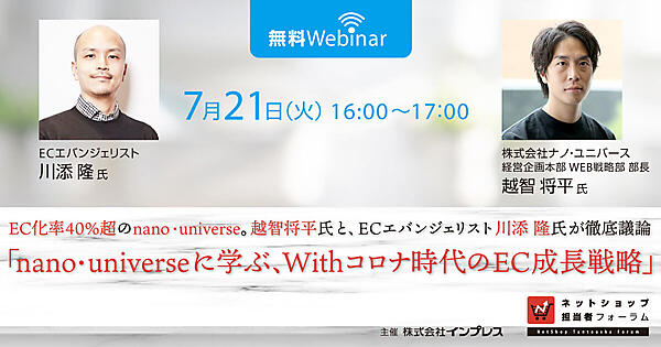 ナノ・ユニバース越智氏とECエバンジェリスト川添氏が生対談「Withコロナ時代のEC成長戦略」【明日開催の無料ウェビナー】