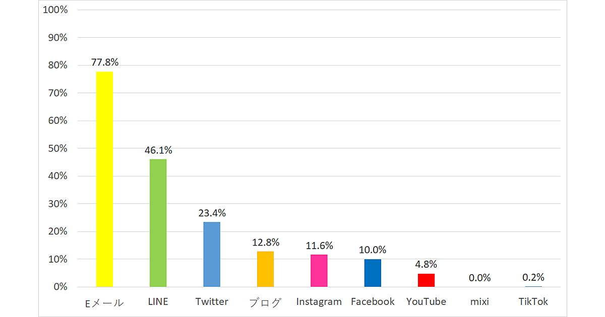 会社や店からのお知らせをどのようなメディアで受け取っているかの聞いたところ、Eメールが88.4%と最多。LINEの53.8%やTwitterの22.5%などのSNSを大きく上回った。オレンジスピリッツは、「企業からの情報の受け取りやすさではSNSが普及した現在でもEメールが最も適していると言える」としている。